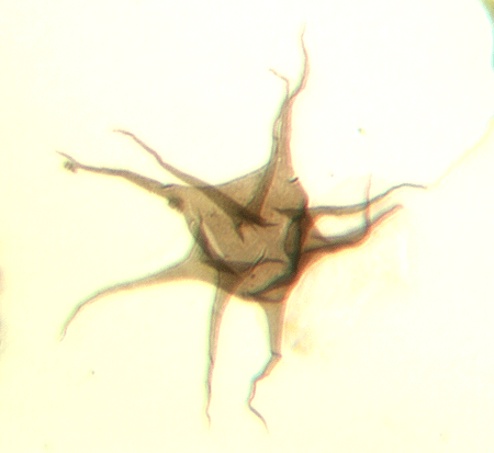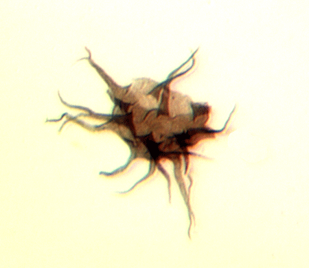 | Acritarch morphology forms the basis of their classification therefore it is worth describing in some detail. Overall body shape ranges from spherical through fusiform (grain of rice shaped), stellate to prismatic. Processes may be simple or complex, solid or hollow, opening into the body or separated from it. Ornament may occur on the body and/or the processes. The form of opening called a pylome (through which excystment occurs) ranges from a distinctive opening in a defined area, a random split anywhere on the body or complete disintegration. |