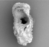 | Planktic and smaller benthic foraminifera are prepared by crushing the sample into roughly five millimeter fragments. The crushed sample is then placed in a strong glass beaker or similar vessel and water and washing soda or 6% hydrogen peroxide added, left to stand and then heated and allowed to simmer. The length of time the sample is left to simmer depends on the rock type involved and if peroxide is used the sample should not be left immersed in the solution for more than about half an hour. Next, the material is washed through a 63 micron sieve untill the liquid coming through the sieve is clean (i.e. the clay fraction has been removed). The sample can then be dried and sieved into fractions (generally 63-125 microns, 125-250 microns, 250-500 microns and greater than 500 microns) using a "nest" of dry sieves. Care must be taken to clean all sieves and materials used between the preparation of each sample to prevent contamination. |