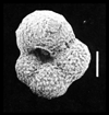 | The following images are of a representative selection of foraminifera aimed at giving a general overview of the different morphotypes. Each specimen is given a generic and, if possible, a species name followed by its age range, the site location from which the sample was obtained and its size in microns. LM (Light Microscope) SEM (Scanning Electron Microscope) TS (Thin Section). Typical and selected marker species are illustrated from each main period of the geological column in which foraminifera occur. Click on an image to view a larger version. Because Foraminifera formsuch a diverse taxon they have been split into three groups: planktics, benthics and larger benthics. |