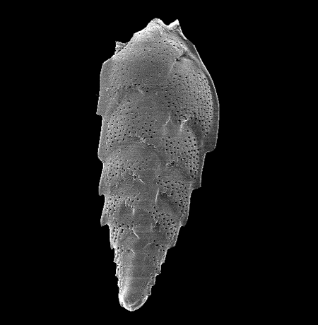 | As previously mentioned, foraminifera have been utilised for biostratigraphy for many years, and they have also proven invaluable in palaeoenvironmental reconstructions most recently for palaeoceanographical and palaeoclimatological purposes. For example palaeobathymetry, where assemblage composition is used and palaeotemperature where isotope analysis of foraminifera tests is a standard procedure. In terms of biostratigraphy, foraminifera have become extremely useful, different forms have shown evolutionary bursts at different periods and generally if one form is not available to be utilised for biostratigraphy another is. For example preservation of calcareous walled foraminifera is dependent on the depth of the water column and Carbonate Compensation Depth (the depth below which dissolution of calcium carbonate exceeds the rate of its deposition), if calcareous walled foraminifera are therefore not preserved agglutinated forms may be. The oldest rocks for which foraminifera have been biostratigraphically useful are Upper Carboniferous to Permian strata, which have been zoned using the larger benthic fusulinids. Planktic foraminifera have become increasingly important biostratigraphic tools, especially as petroleum exploration has extended to offshore environments of increasing depths. The first and last occurrence of distinctive "marker species" from the Cretaceous to Recent (particularly during the Upper Cretaceous) has allowed the development of a well established fine scale biozonation. |