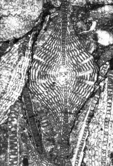 forms a "spiders web" between the stipes of coralline algae. Infaunal forms are probably detritivores and commonly have elongate tests to facilitate movement through the substrate. Benthic and planktonic foraminifera which inhabit the photic zone often live symbiotically with photosynthesising algae such as dinoflagellates, diiatoms and chlorophytes. It is thought the large benthic, discoidal and fusiform foraminifera attain their large size in part because of such associations. Foraminifera are preyed upon by many different organisms including worms, crustacea, gastropods, echinoderms, and fish. It should be remembered that the biocoenosis (life assemblage) will be distorted by selective destruction by predators. |