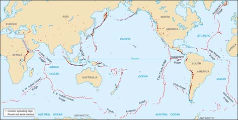 Figure 2: Spreading plate boundaries and volcano locations on Earth